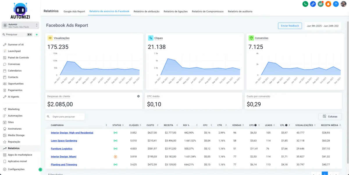 ● Relatórios detalhados de atribuição, agendamentos e desempenho de vendas